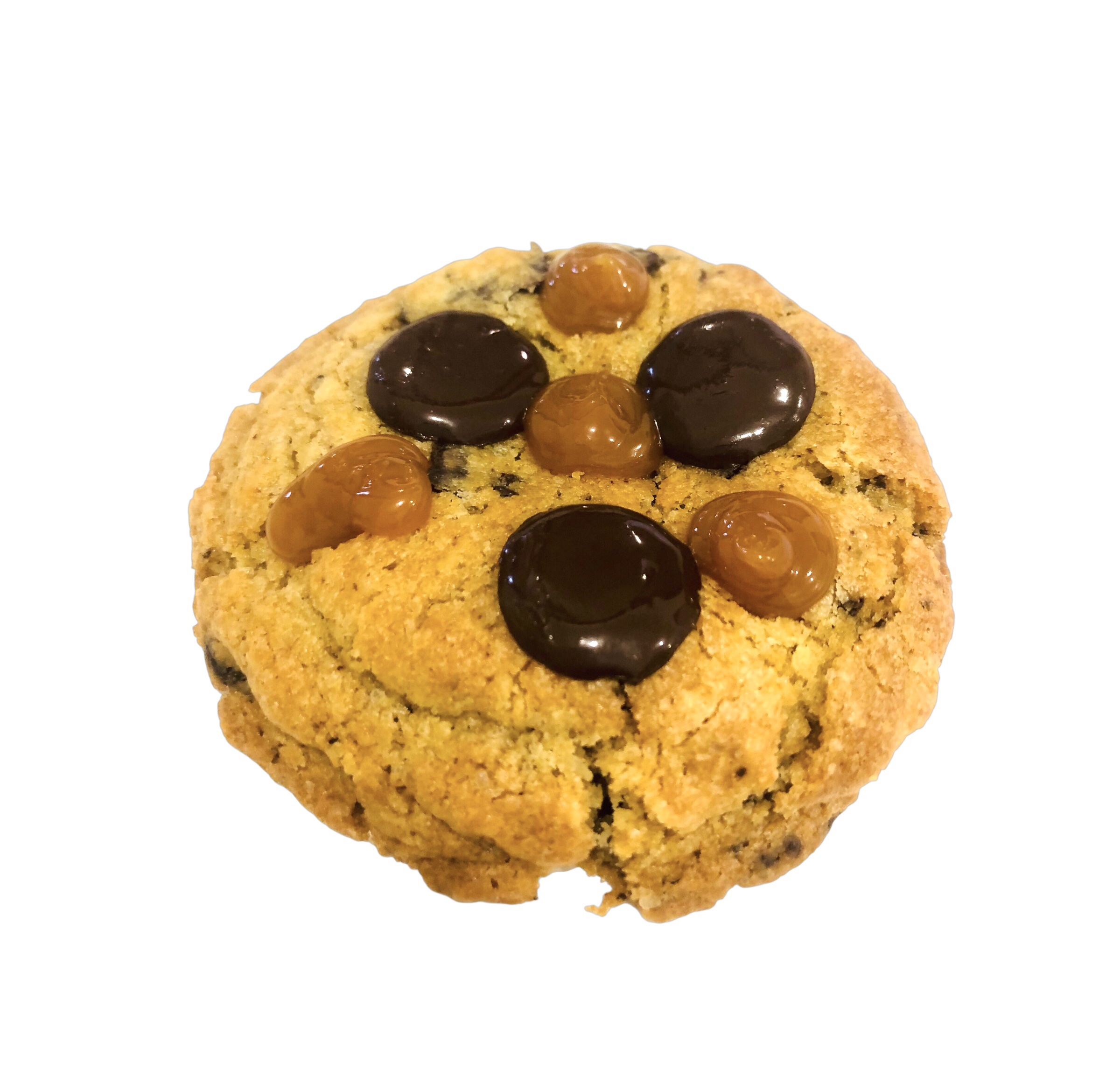 Ingrédients : Base nature, chocolat noir 64%, caramel beurre salé de chez Du sukr et du beurre Allergènes : Gluten, lactose, œuf, présence possible de fruits à coque, fruits ( framboises, mangue, passion, noix de coco). Poids : entre 105 et 115 gr
